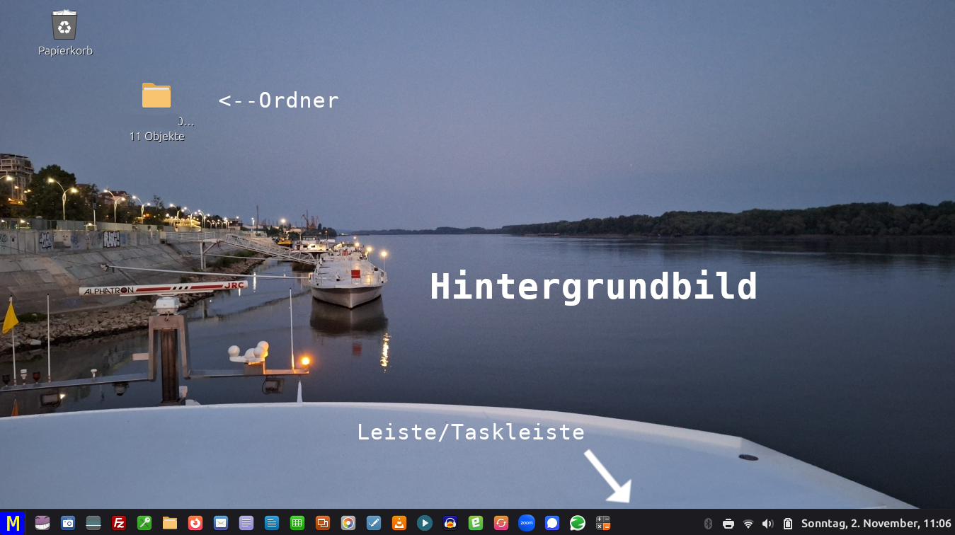 - Standardmäßig ist die Leiste/Taskleiste unten platziert