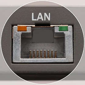 - Verbindung mit Kabel an der Buchse „RJ45 LAN“